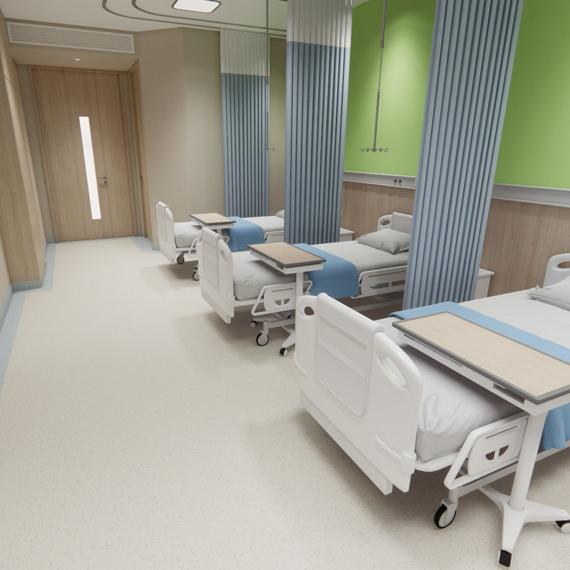 ✔️Bezpieczeństwo i komfort: Antypoślizgowe tekstury i właściwości redukujące hałas poprawiają rekonwalescencję pacjentów, a amortyzacja zmniejsza zmęczenie personelu.