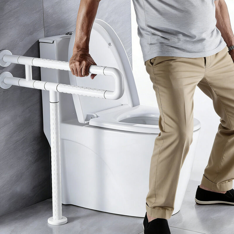 Dwustronna poręcz toaletowa w kształcie litery U posiada nylonową warstwę zewnętrzną i rdzeń ze stopu aluminium wysokiej jakości, z antypoślizgową fakturą, ciepłym dotykiem i właściwościami antybakteryjnymi, co czyni ją idealnym, bezpiecznym wsparciem dla domów, szpitali, domów opieki i różnych publicznych łazienek dostępnych dla osób niepełnosprawnych.